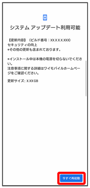 通知パネルに表示されるソフトウェア更新の通知をタップし、画面の指示に従って操作してください。