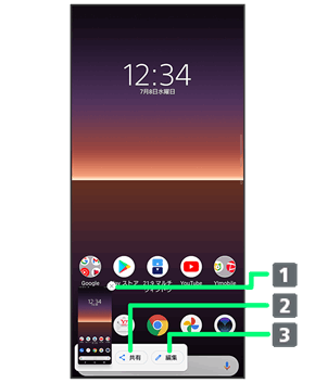 スクリーンショットを撮ると通知パネルに表示されていたスクリーンショット保存の通知は表示されなくなり、「共有」「編集」の項目は、画面左下の表示に変更されます。「削除」の項目は削除されます。