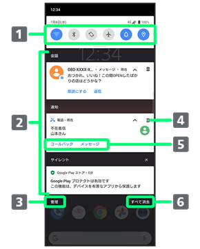 4通知によって利用できる機能は異なります。たとえば着信の通知では、着信のあった電話番号に発信したり、SMSを送信できます。