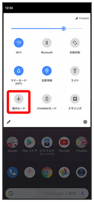 機内モードを設定しているときに、同様の操作を再度行うと機内モードが解除されます。