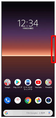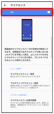 サイドセンスとは、本機の片手での操作をサポートする機能で、画面端に表示されるサイドセンスバーを操作して利用できます。