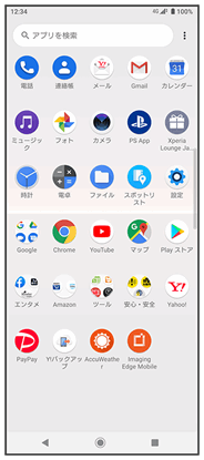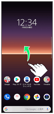 「ランチャー画面」は、ホーム画面で画面を上にフリックと操作すると表示できます。