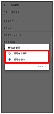 発信者番号通知が設定されます。