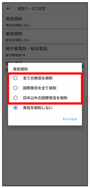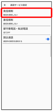 発信規制が設定されます。