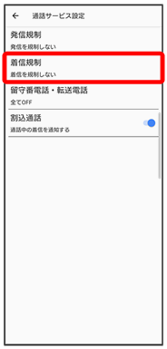 着信規制が設定されます。