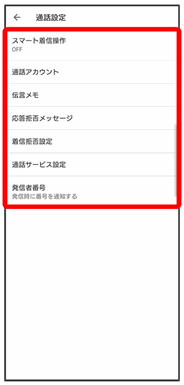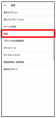 通話に関する設定ができます。設定できる項目は次のとおりです。