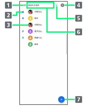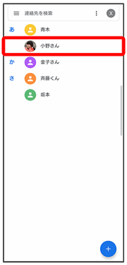 | タップすると、連絡先詳細画面が表示されます。 | ||