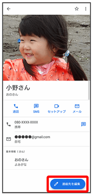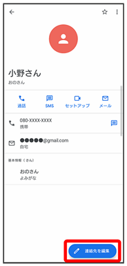 連絡先詳細画面が表示されます。