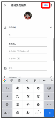 連絡先の登録が完了します。