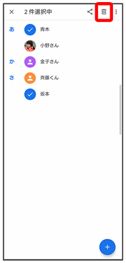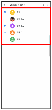 | 連絡先を選択したり、連絡先の表示を変更することができます。 | ||