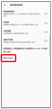 着信拒否設定画面が表示されます。