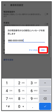 また、電話番号を指定してブロックすることで、着信やSMSの受信を拒否することができます。