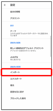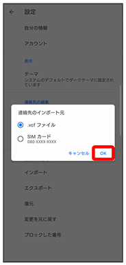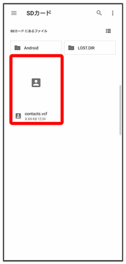 SDカードに保存(バックアップ)した電話帳データを読み込み(インポート)できます。