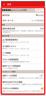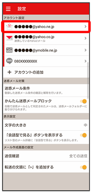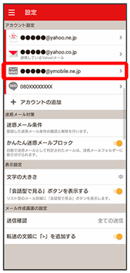 • ↓Y!mobile メール設定画面で、Y!mobile メールのアカウントをタップ