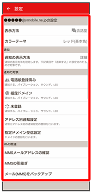 アカウント設定 メールアカウントの設定ができます。詳しくは、「Y!mobile メールの設定」「MMSの設定」「SMSの設定」を参照してください。