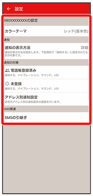 電話帳登録済み 電話帳に登録済みの相手からメールを受信したときの通知方法を設定します。