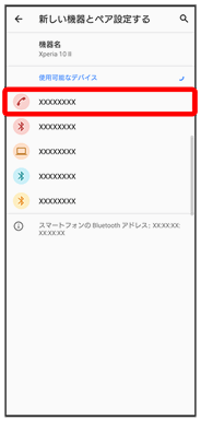 「使用可能なデバイス」欄に、近くにあるBluetooth®機器が表示されます。