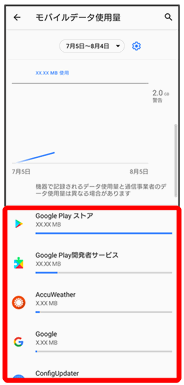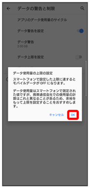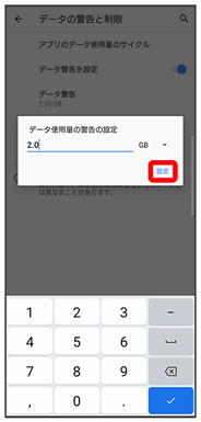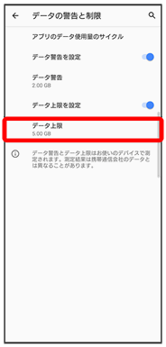 モバイルデータ通信の使用量を確認したり、使用を制限することができます。