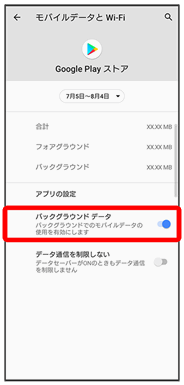 | バックグラウンドデータの通信 | バックグラウンドデータの通信を制限します。詳しくは、「バックグラウンドのモバイルデータ通信を制限する」を参照してください。 | |