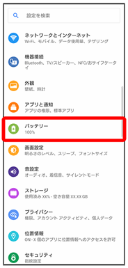 | いたわり充電 | 電池の性能をより良い状態に保ち、寿命を延ばすための機能です。充電の習慣(充電器に長く接続している時間帯)を学習して、充電速度を調節するように設定できます。 | |