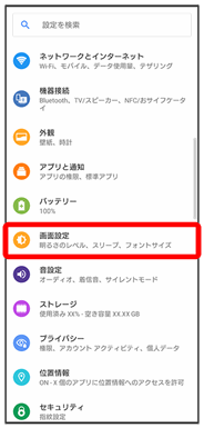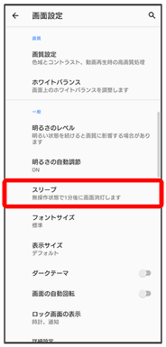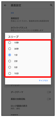 | スリープ | 一定時間操作をしなかったときに、画面が自動消灯するまでの時間を設定します。 | |