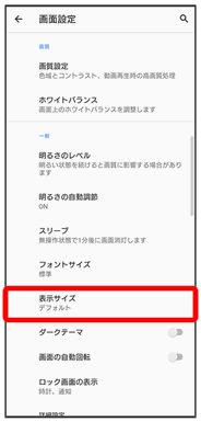 | 表示サイズ | 画面に表示される画像やアイコンなどの大きさを設定します。 | |