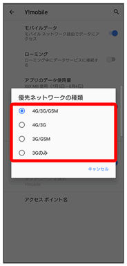 その他、必要に応じて通信方式、ローミングの設定を変更してください。