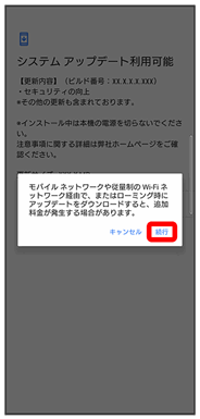 通知パネルに表示されるソフトウェア更新の通知をタップし、画面の指示に従って操作してください。