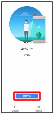 はじめて本機の電源を入れたときは、初期設定画面が表示され、Wi-FiやGoogle™ アカウントなどの設定を行うことができます。画面の指示に従って、各項目を設定してください。