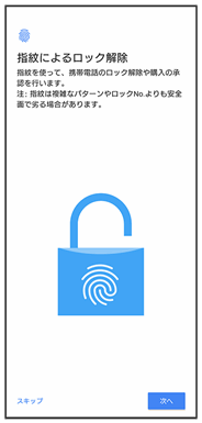 予備の画面ロックは、本機を再起動したあとや指紋が認識されなかった場合などに必要となりますので、忘れないようにご注意ください。
