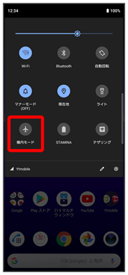 機内モードを設定しているときに、同様の操作を再度行うと機内モードが解除されます。