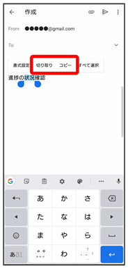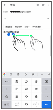 文字入力画面やウェブサイトなどで、入力済みの文字やコピーしたいテキストをダブルタップ/ロングタッチすると、選択した文字列の周辺に編集メニューが表示されます。表示されるメニュー項目は、アプリによって異なります。