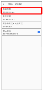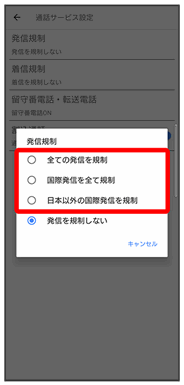 発信規制が設定されます。