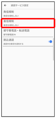 着信規制が設定されます。