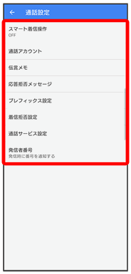 通話に関する設定ができます。設定できる項目は次のとおりです。