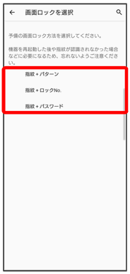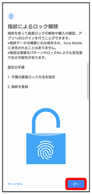 - 指紋認証が5回連続して認識されなかった場合は、指紋認証ができなくなります。しばらくしてから再度指紋認証を行うか、画面を上にフリックして設定した画面ロック解除方法を入力してください。