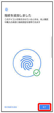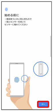 - 指紋センサーに指を触れたまま指紋の登録や認証を開始すると、起動できない場合があります。指を離し、再度操作してください。