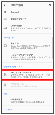 充電中に本機の電源を切っている場合、NFC/おサイフケータイ®機能は使用できません。充電中に使用する場合は、本機の電源を入れてください。