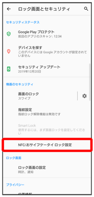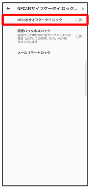 NFC/おサイフケータイ® ロック設定画面が表示されます。