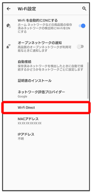 Wi-Fi Direct®を利用すると、Wi-Fiネットワークやインターネットを経由せずに、ほかのWi-Fi Direct規格対応機器と、簡単にWi-Fi接続することができます。