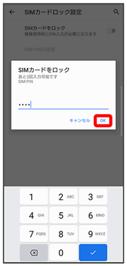 PINコードを有効にすることで、SIMカードを本機に取り付けた状態で電源を入れたとき、PINコードを入力する画面を表示するように設定できます。