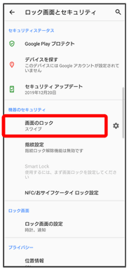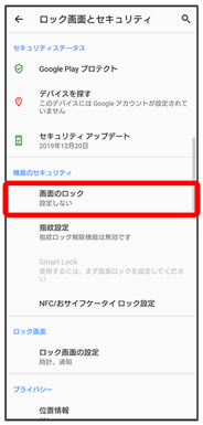 画面ロックや、SIMカードロックなどに関する設定ができます。