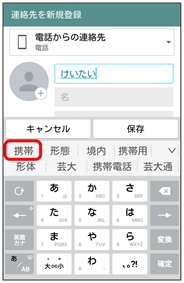 文字入力画面で、「けいたい」と入力