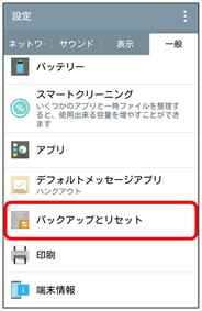 バックアップに関する設定を行ったり、データの初期化を行うことができます。設定できる項目は次のとおりです。
