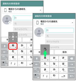 10キーキーボードで入力するとき、キーを上下左右にフリックすることで、キーを繰り返してタップすることなく、入力したい文字を表示することができます。