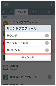 (バイブレート)をタップしてもマナーモードを設定できます。マナーモードについて詳しくは「