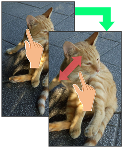 2本の指で画面に触れ、指を開いたり(ピンチアウト)、閉じたり(ピンチイン)します。