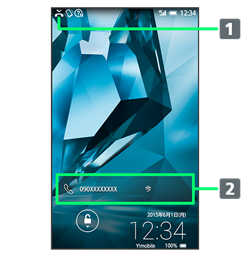(不在着信あり)の通知アイコンが表示されます。ウェルカムシート(ロック画面)では、お知らせが表示されます。