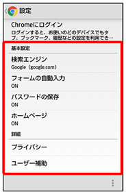 | Chromeについて | ![]() | Chromeのバージョン情報などを確認します。 |