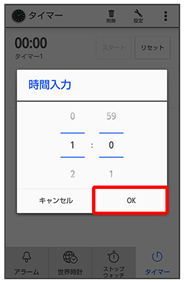 設定時間を経過すると、アラーム音やバイブレータでお知らせします。カウントダウンを停止するときは、